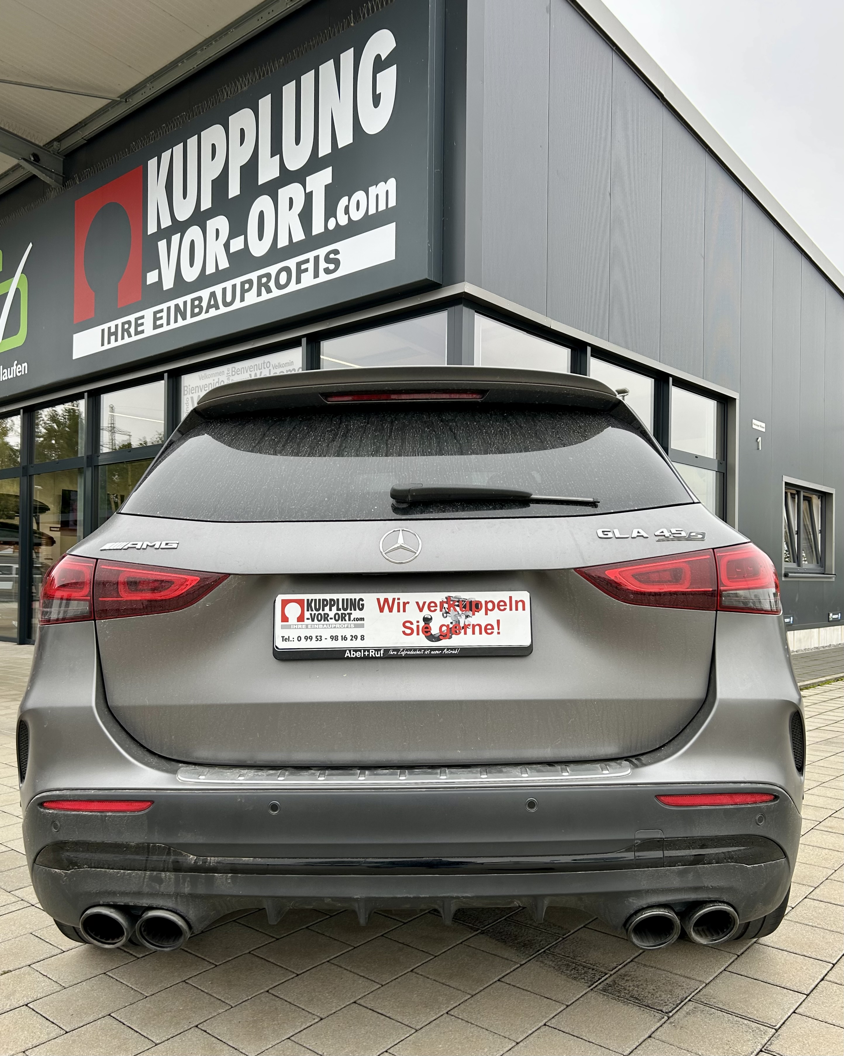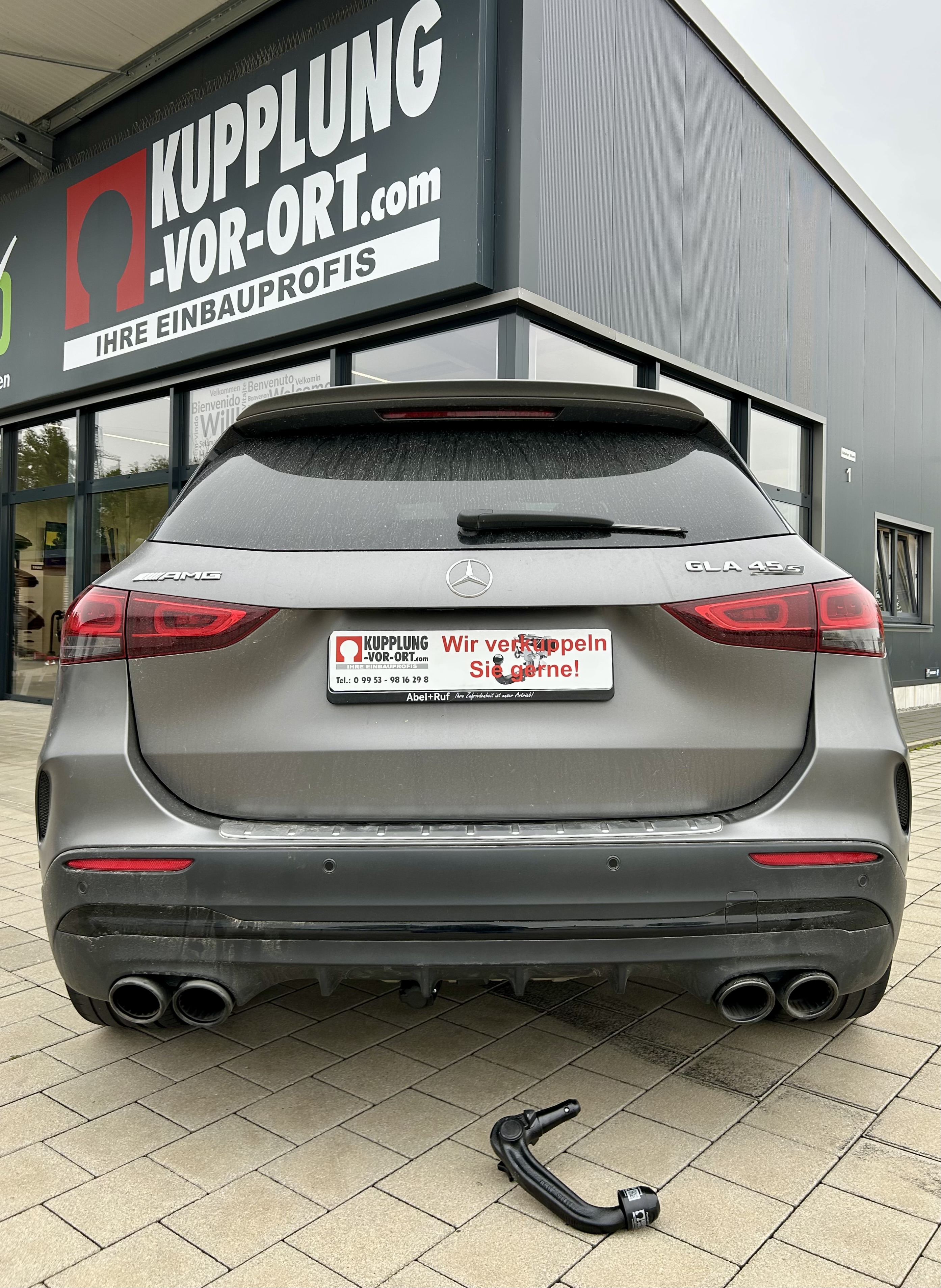 Anhängerkupplung für den Mercedes-AMG GLA 45s. Unsichtbare Optik, schnelle Montage (2,5 Std.) und Codierung aller Fahrassistenzsysteme.